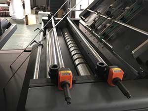 板紙+板紙又は薄紙+板紙の貼合をする機械です。 |